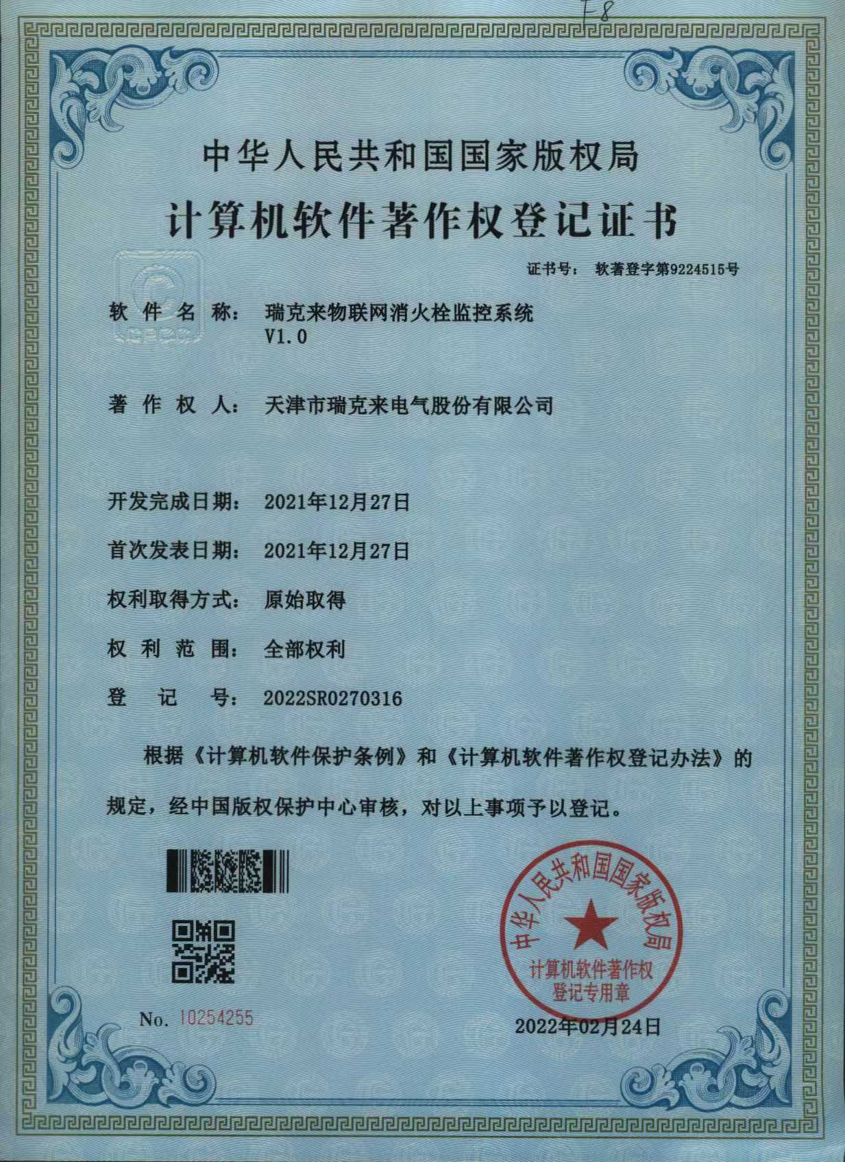 作为新型制造业,技术力与企业合规性是自身实力的首要体现,瑞克来作为智慧消防体系应用与推广的中坚力量,自身资质与智慧创新技术自然少不了